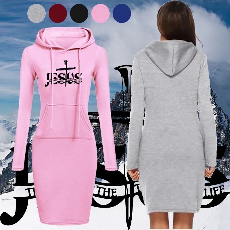 Jesus The Way The Truth The Liee Letter Print Long Sleeve Hooded Dress Casual Dress
