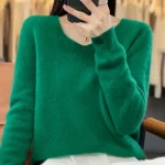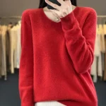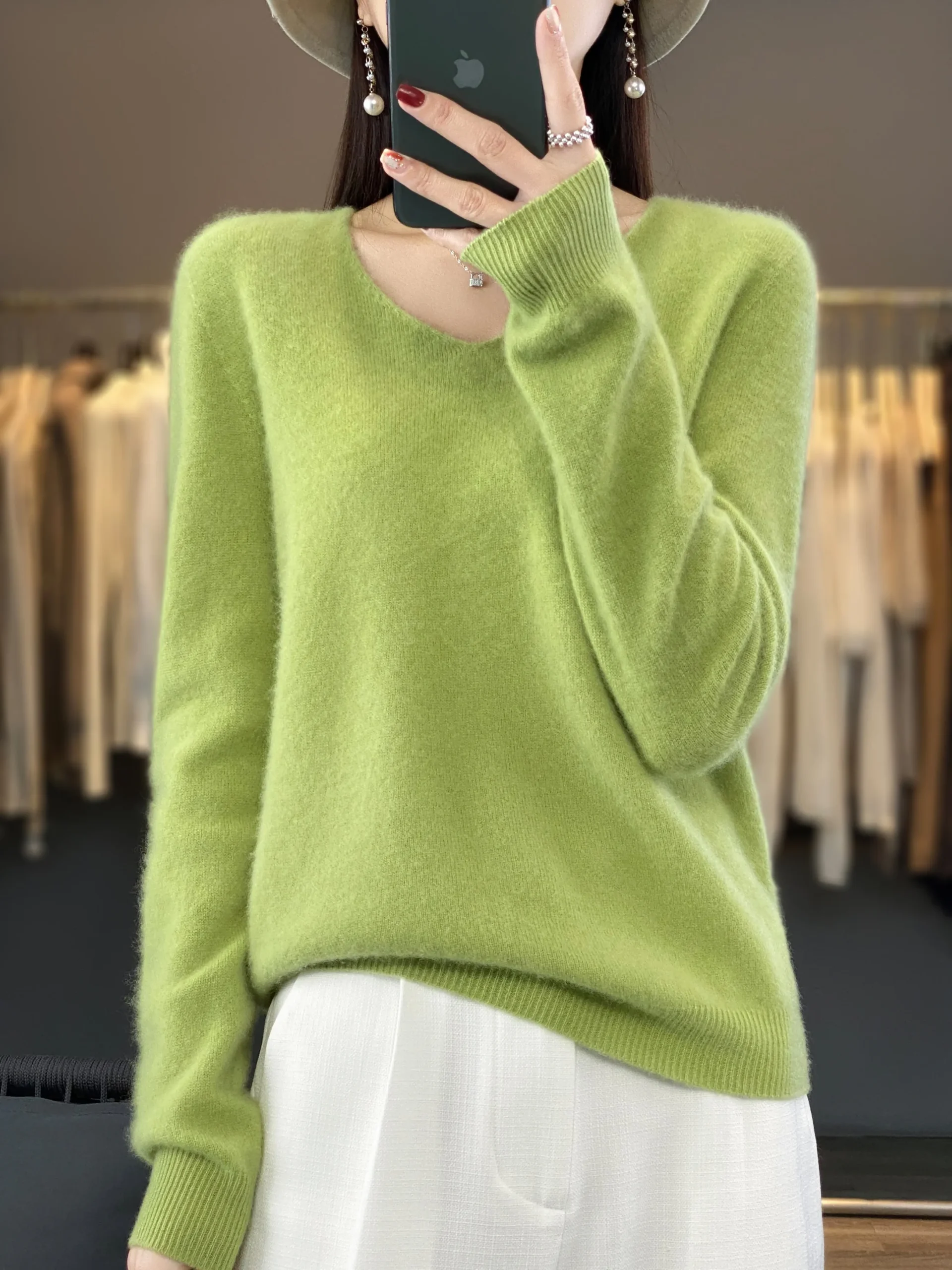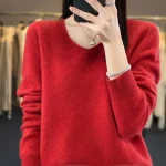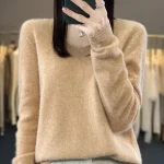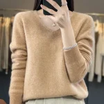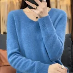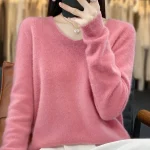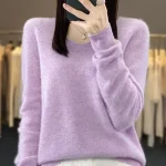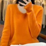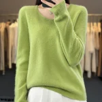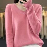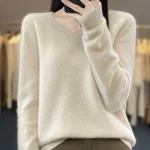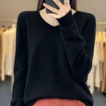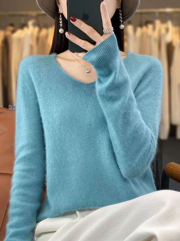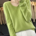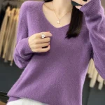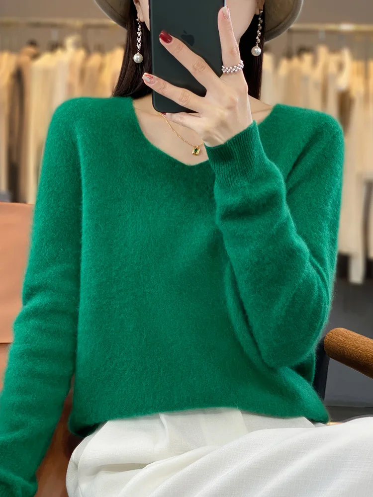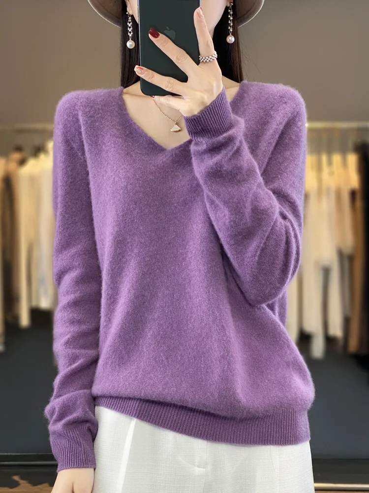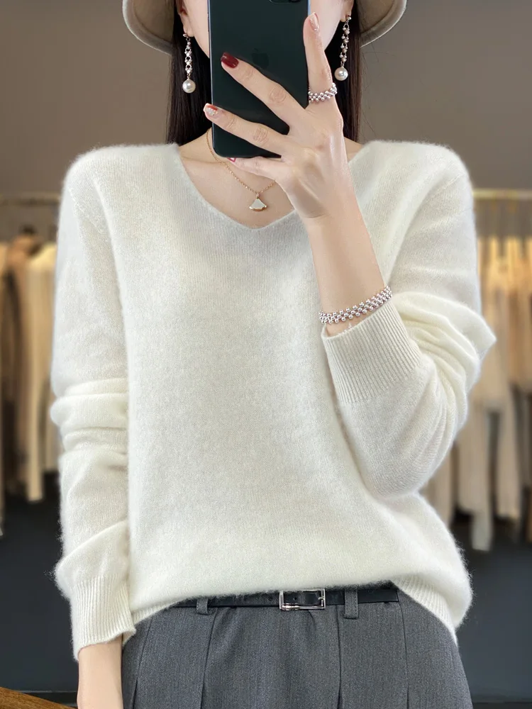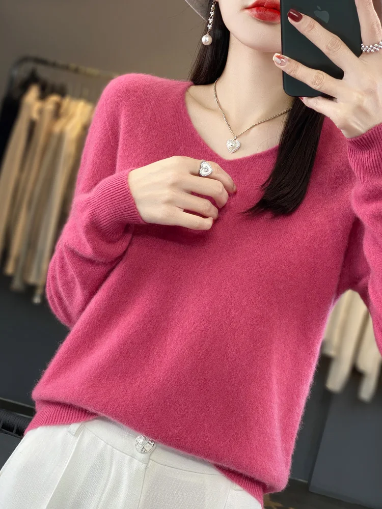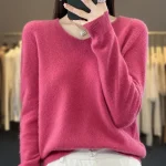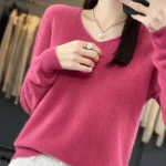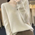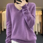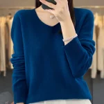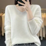 100% Merino Wool Women’s Sweater V-Neck Long Sleeve Pullovers Autumn Winter Basic Jumper Cashmere Knitwear Warm Female Clothing