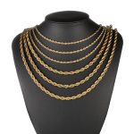 2-6MM Gold Color Twisted Rope Chain Necklace Stainless Steel Never Fade Waterproof Choker For Men Women Fashion Jewelry