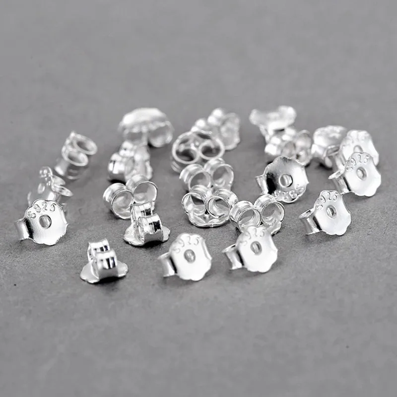20PCS/set Metal S925 Silver Color Earring Backs Hooks Stoppers Ear Post Nuts Accessories for Making Stud Earrings Diy Wholesale
