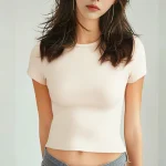 Solid color basic short sleeved tight fitting T-shirt for women's casual summer minimalist women's Korean style full top O-neck