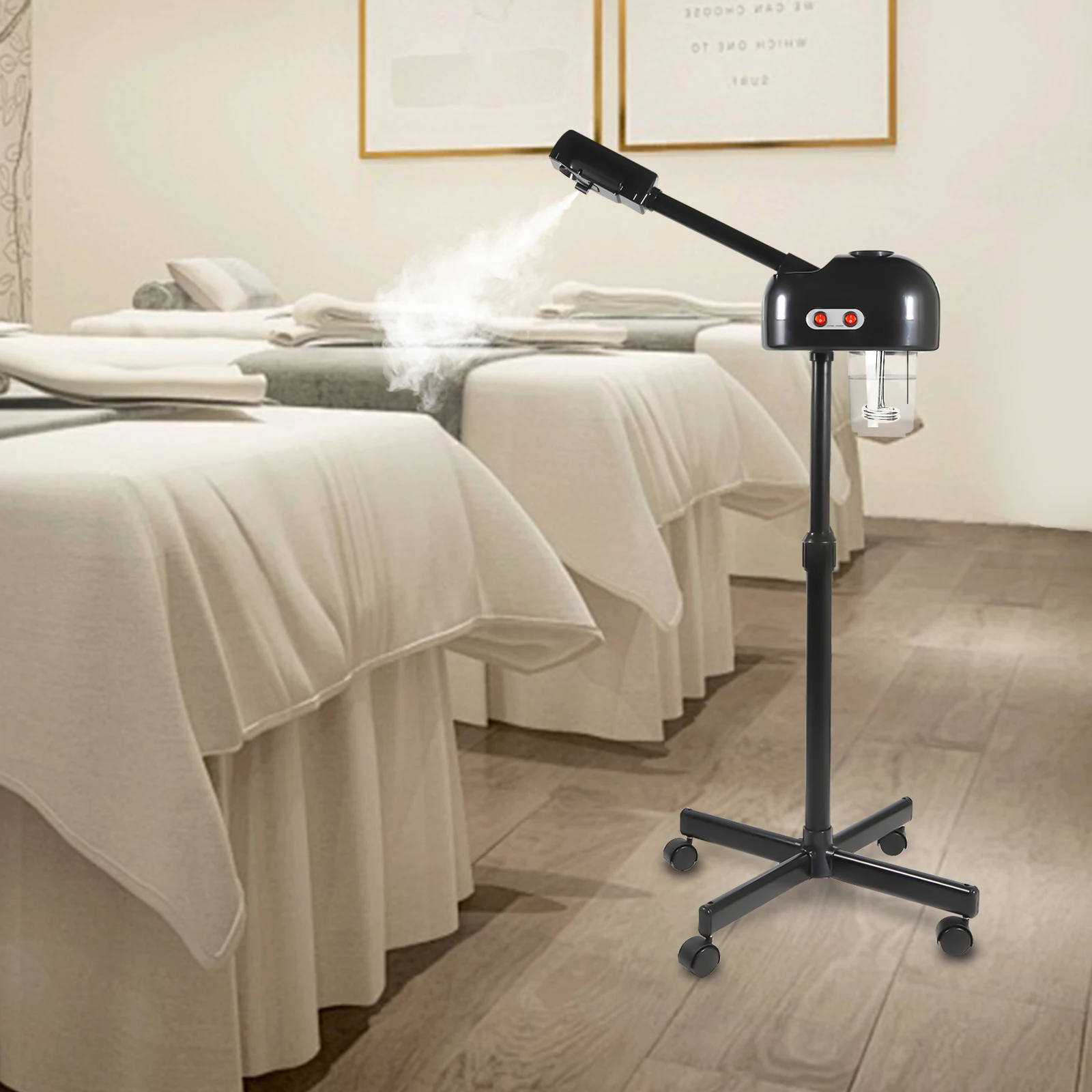 750ml Large Capacity Professional Floor Standing Facial Steamer with Hot Mist Function & Universal Wheels Home Height Adjustable Movable Sprayer 800W 110V/220V Electric Spraying Machine 360° Rotatable Deep Hydration Skin Care Equipment for Salon Beauty Spa Shop (White/Black)