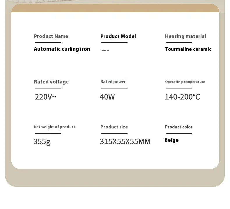 Is Batteries Included / Hign-concerned Chemical / Certification / Power Source / Commodity Quality Certification / Max. temperature / Temperature Controller / Applicable hair / Min. temperature / Origin / Power (W) / Item Type