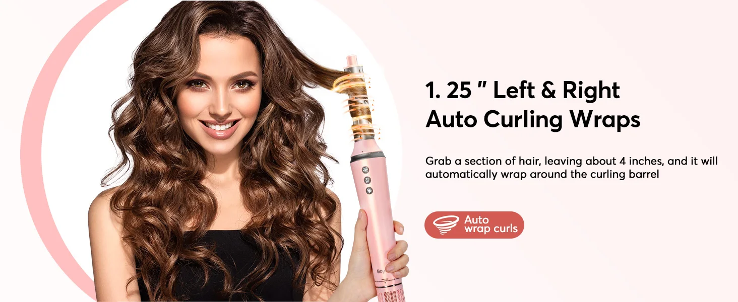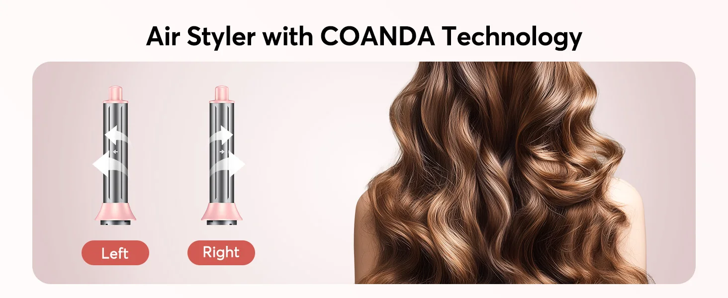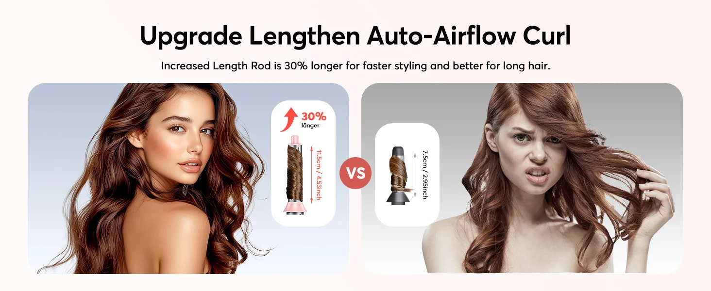 【2024 Upgrade Auto Airflow Curl System】Upgrade lengthening the Hair Styler air Curler wand in the left/right direction, Made of aviation aluminum material, it can heat up faster and has stronger adsorption to hair. The powerful continuous Negative Ionic air flow ensures that the hair is automatically wrapped to the surface of the curling iron, and can be created without overheating, creating volume, smoothness, and natural curls.