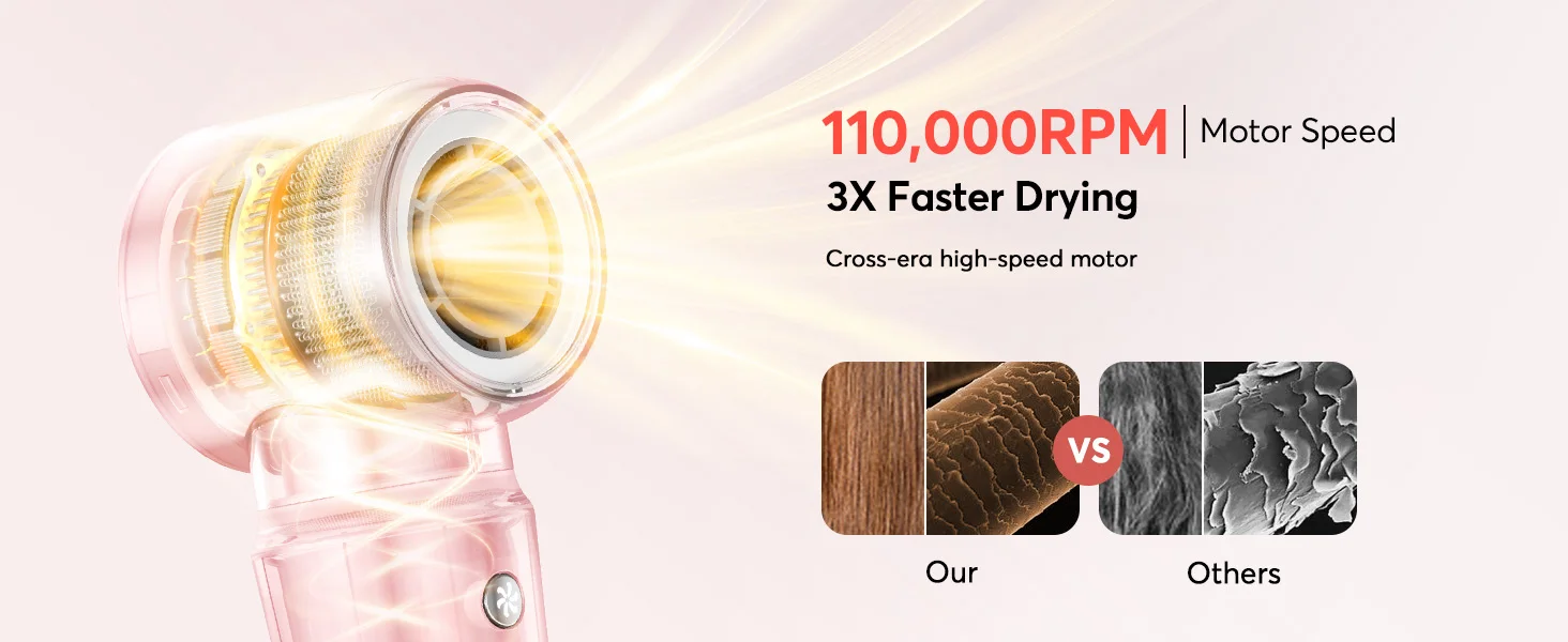【 110000 RPM High Speed Hair Dryer Set】The airstyler comes with self-designed high-speed motor with up to 110,000rpm produces a fast and powerful airflow with a speed of up to 20M/s, 6 times more powerful than a conventional hair dryer warm air brush. For ultra-fast drying without heat damage, it saves your styling time in half. Innovation for an exceptional styling experience.