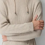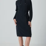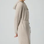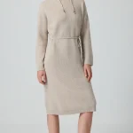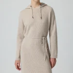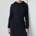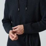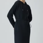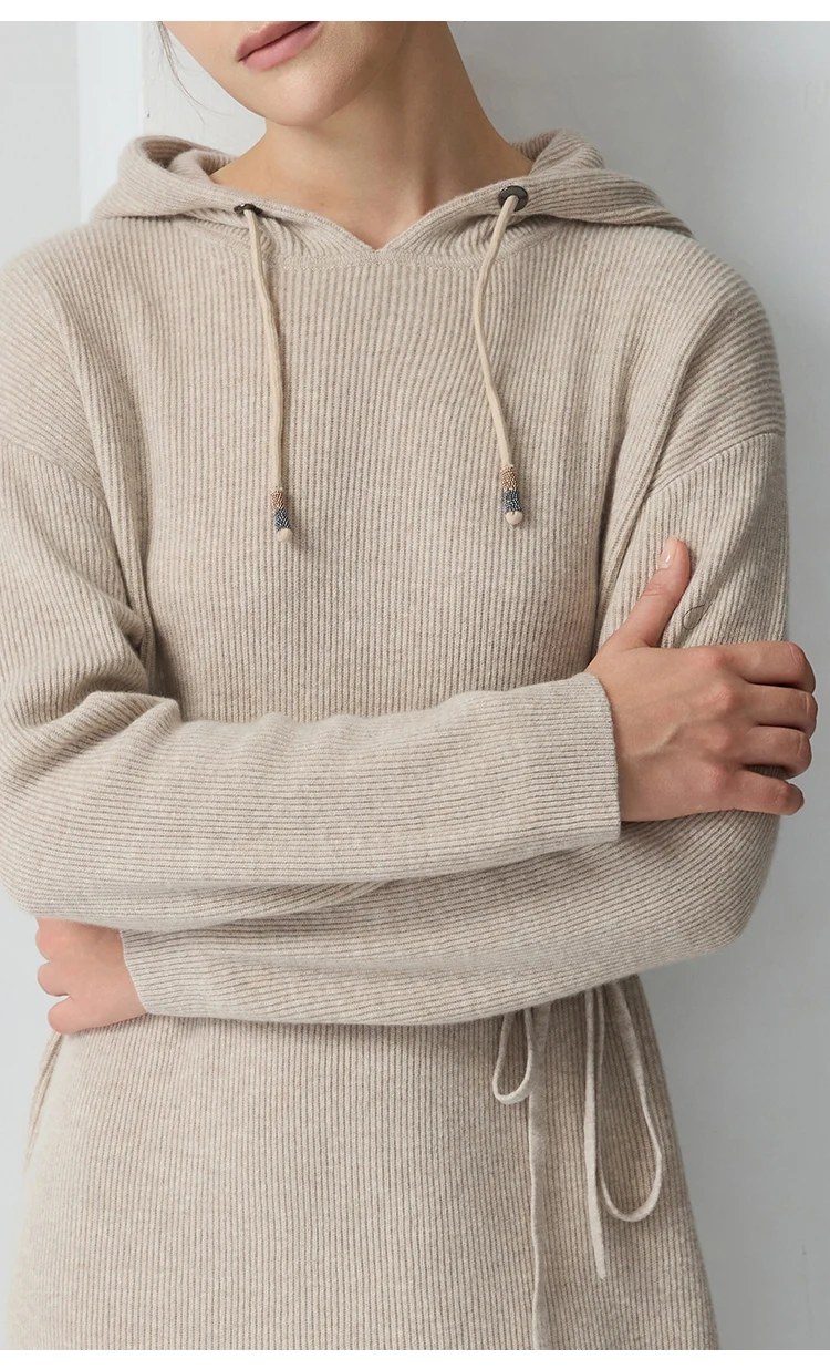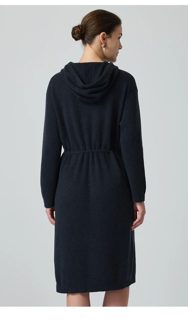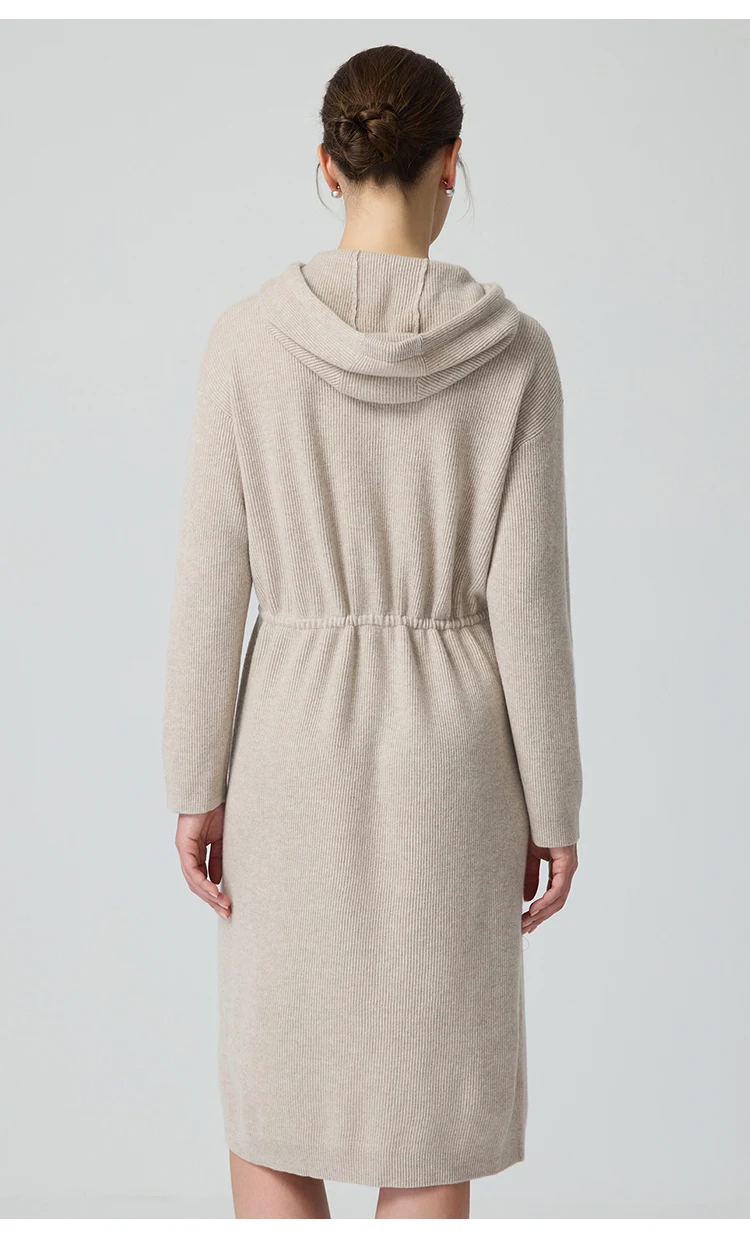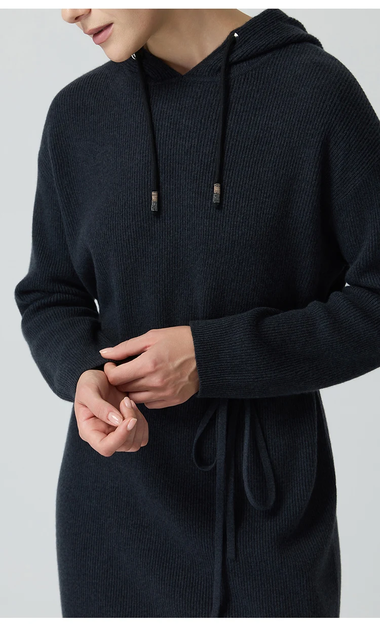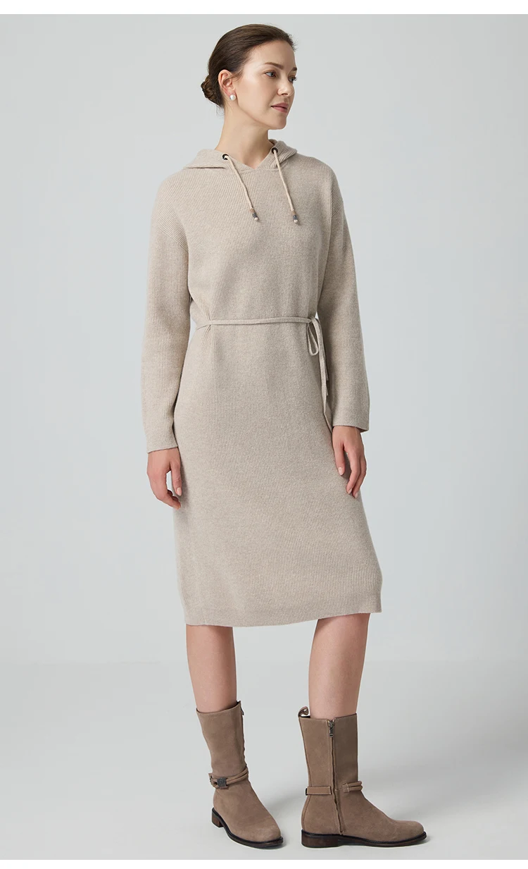 BY3521369 Luxury 100% Merino Wool Sweater Dress Fine 12-Gauge Knit Hoodie Style Drawstring And Belted Waist
