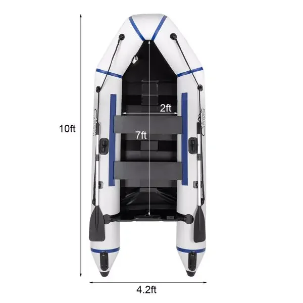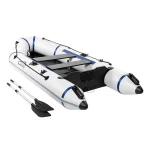 Are you looking for an inflatable boat thatcoexists with practicality and safety, our Inflatable assault boat can fullymeet your needs. It is made of high-quality 3-layer 0.9mm 1100D PVC, so thereis no need to worry about damage caused by quality problems. The design of two independent air chambers allows you to accidentally damage one of the airchambers when you accidentally hit the reef or other sharp objects during use,and the another air chambers are also enough to support you to reach the landand ensure your safety. Fast inflatable and portable design. When not in use,it can be stored in a carrying bag to save space. When you need to use it, Youcan use the foot pump that comes with the product to inflate, you can enjoy the joy of playing in thewater, which is very practical.