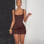 Chic Bown Pleated Hem Mini Dress Women’s Elegant U-neck Sleeveless Backless Bandage Slim Dresses 2025 New Summer Lady Party Gown