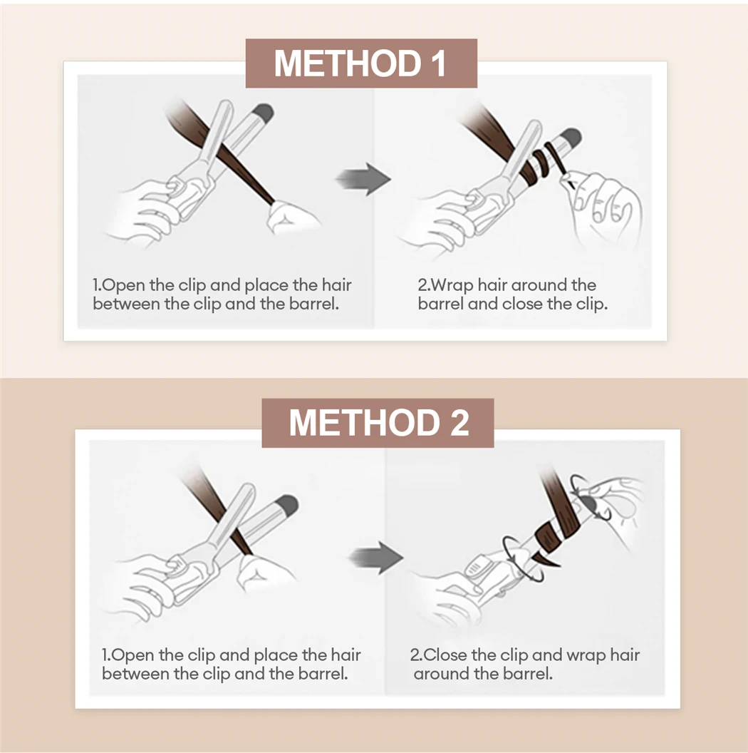 1. Please preheat the curl iron for 1 minute after turning it on and let the hair stay for 5-10 seconds.