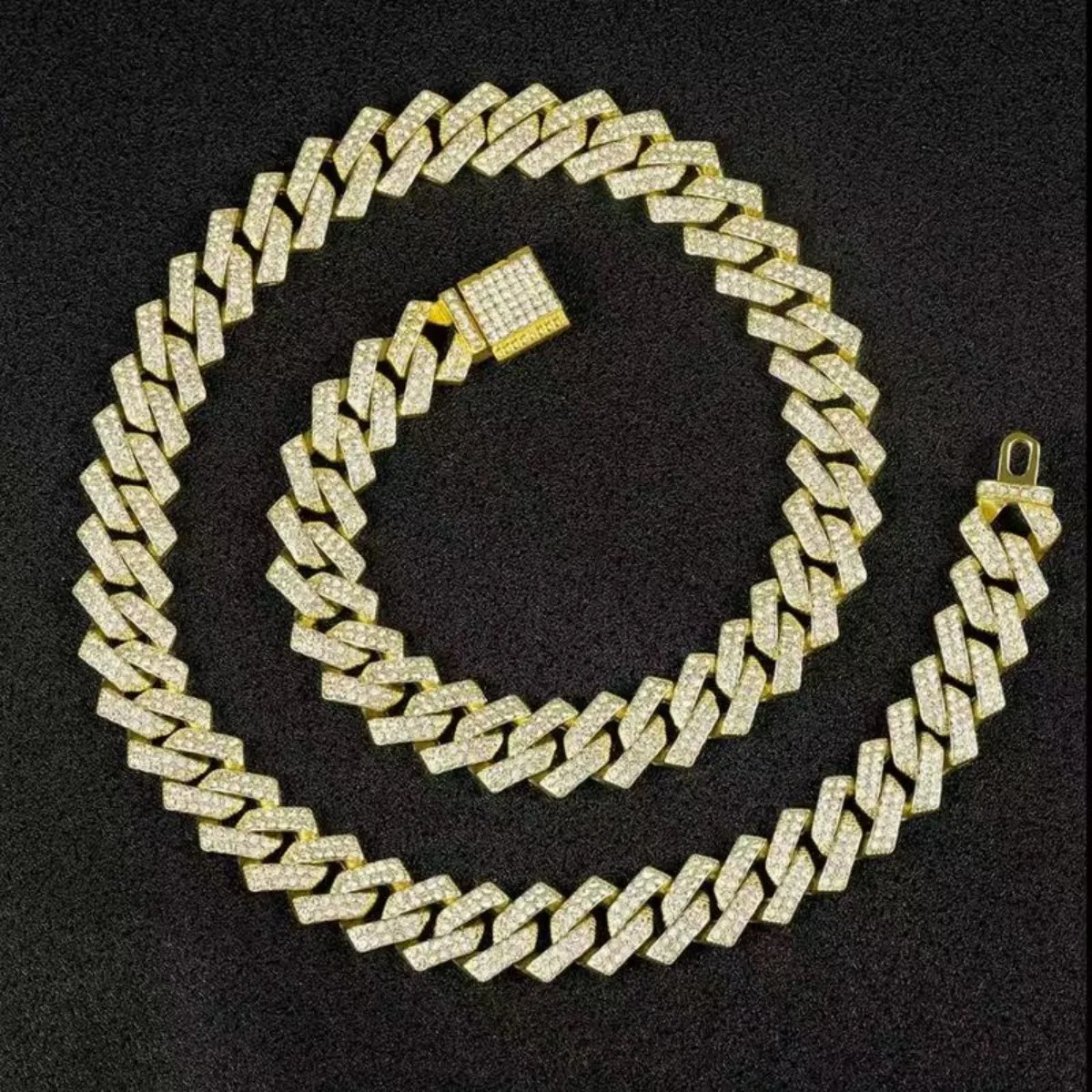 Cuban Link Chain for Men lced OutChokerNecklace with Prong Setting Big HeavyChunkyHip Hop Jewelry Starry Sky RhinestoneDesign