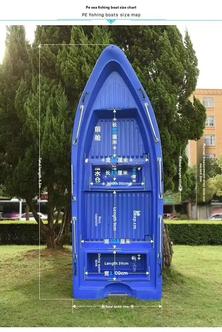 Durable 10 Persons 4.3m Large Speed Sea Fishing Pe Plastic Boat for Sale
