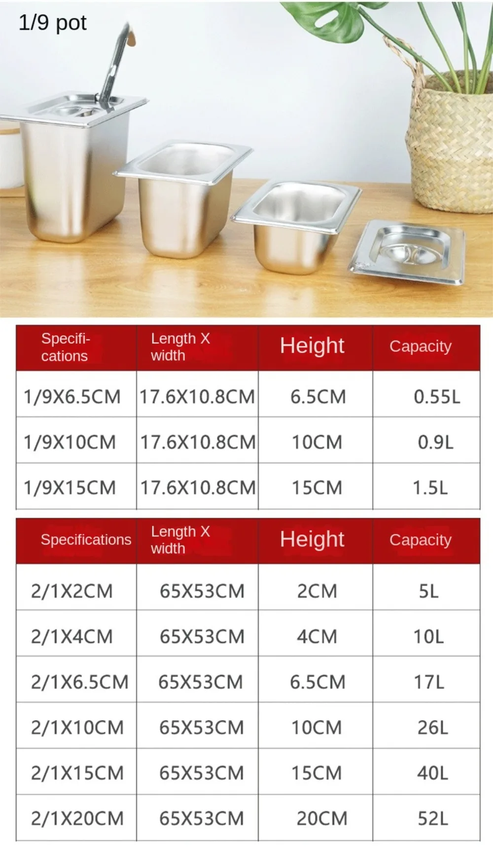 2. **Variety of Sizes**: Available in multiple sizes (1/9, 1/6, 1/4, 1/3, 1/2), these pans provide flexibility for different food storage and serving needs. The variety ensures you can find the perfect fit for any buffet, chafing dish, or food preparation requirement.