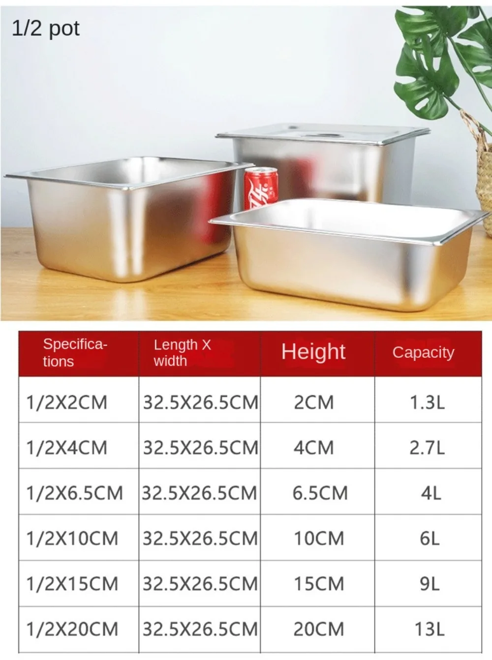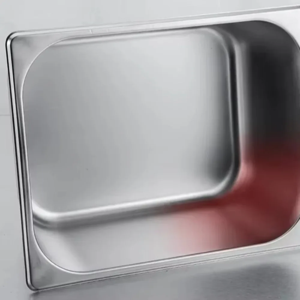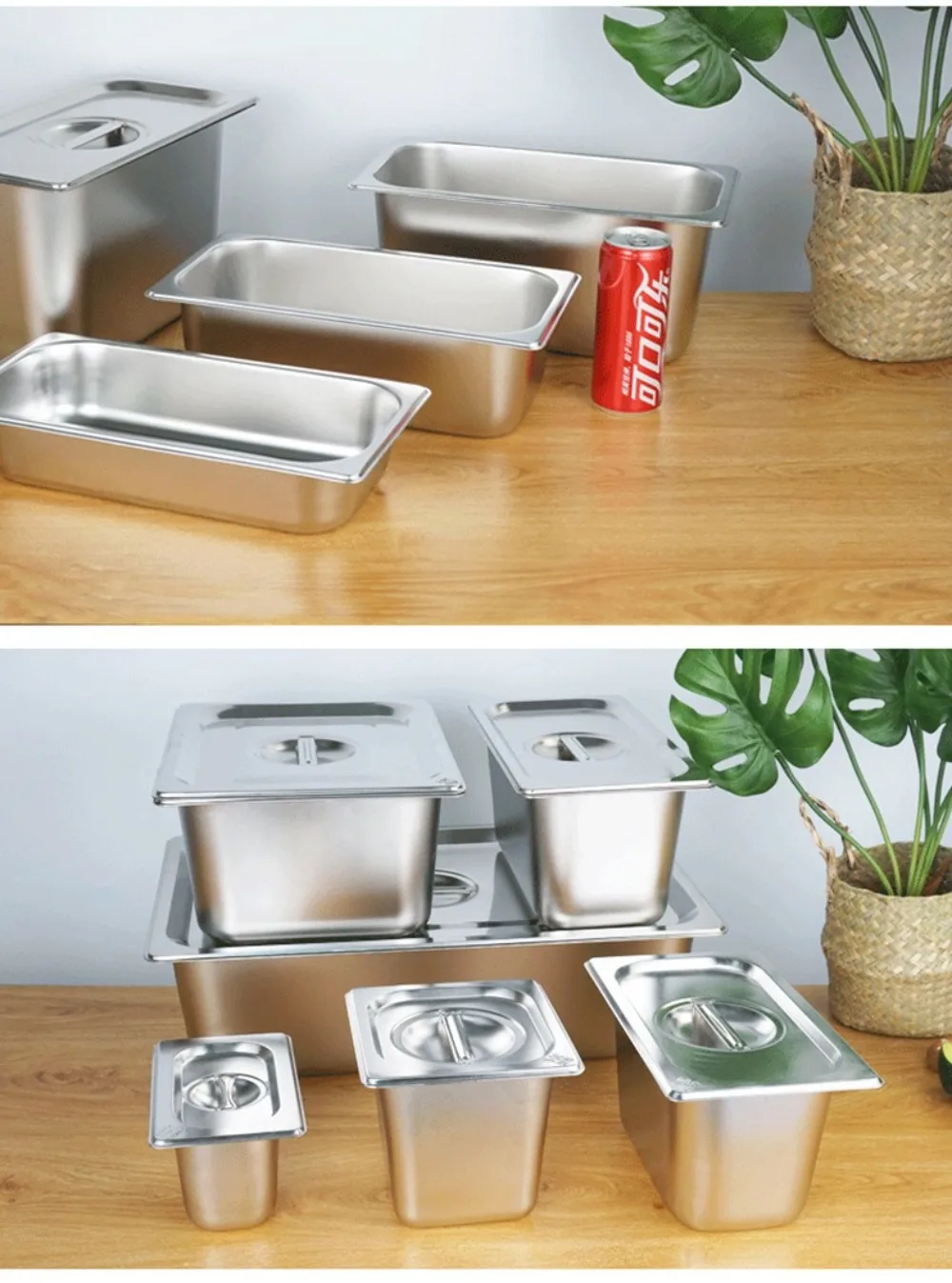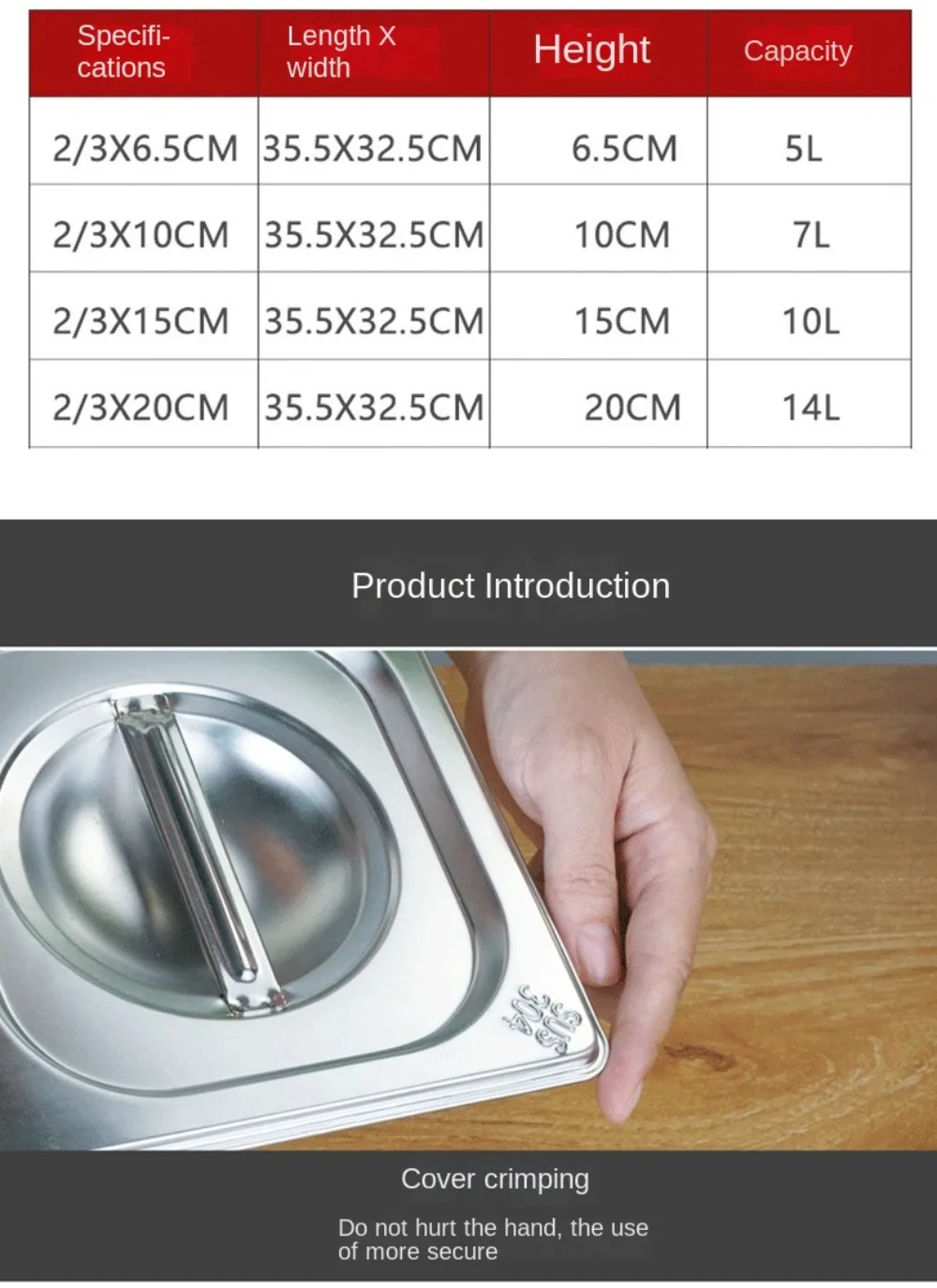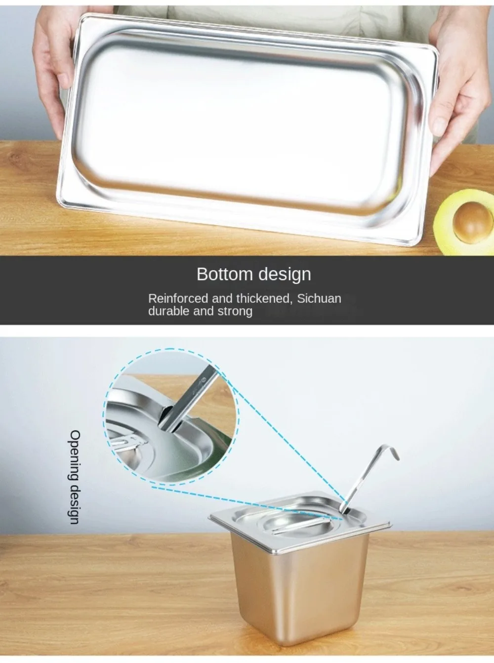 3. **Thickened Design**: The pans feature a thickened construction, which enhances their strength and heat retention capabilities. This makes them ideal for both hot and cold food applications, ensuring even temperature distribution and maintaining food quality.