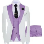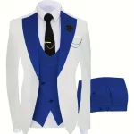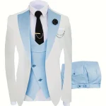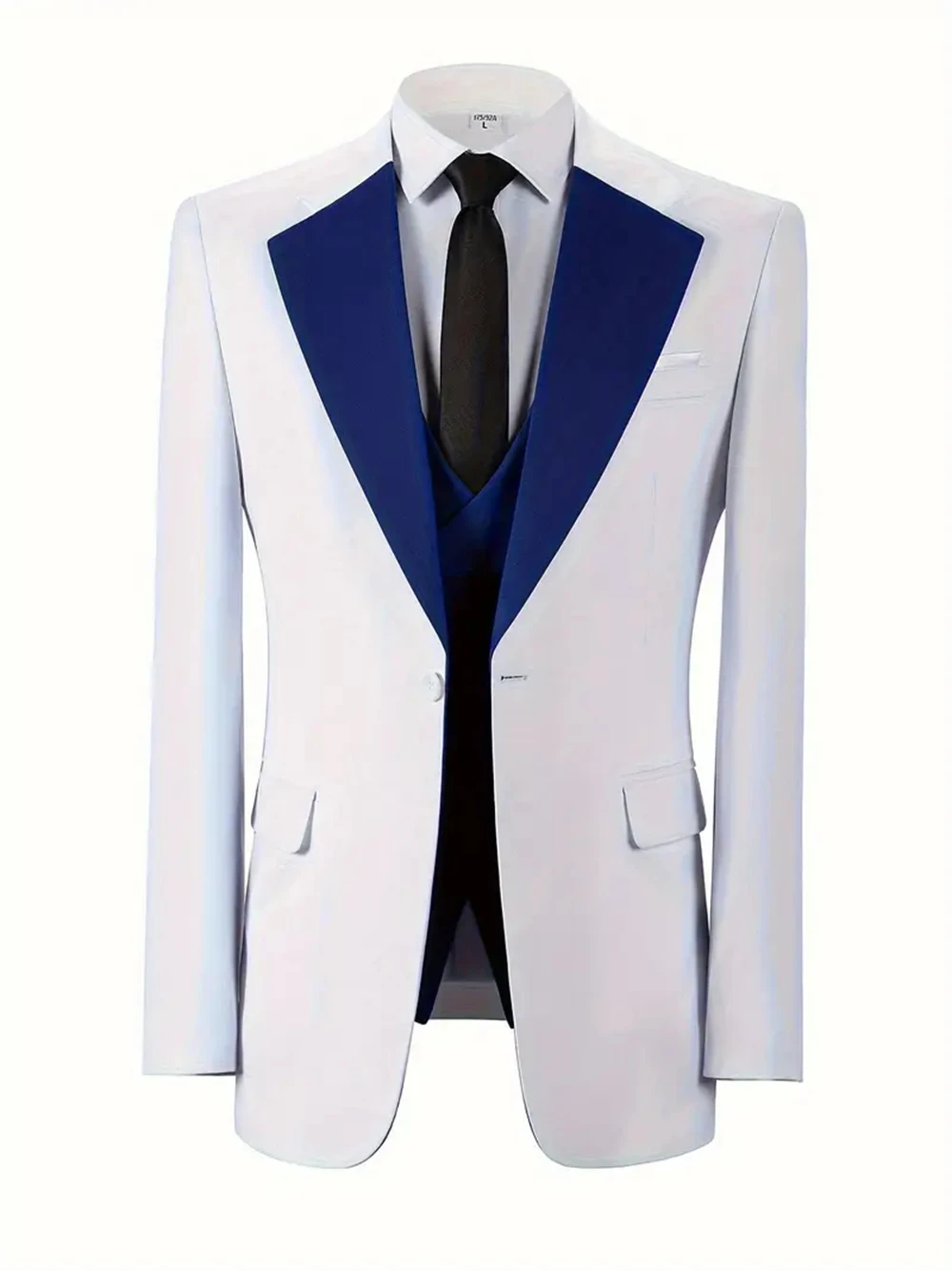 Fashion Men’s Suits 3 Piece Groom Bestmen Slim Fit Wedding Prom Party Tuxedo Elegant Formal Events Dress Suit (Blazer+Vest+Pant)