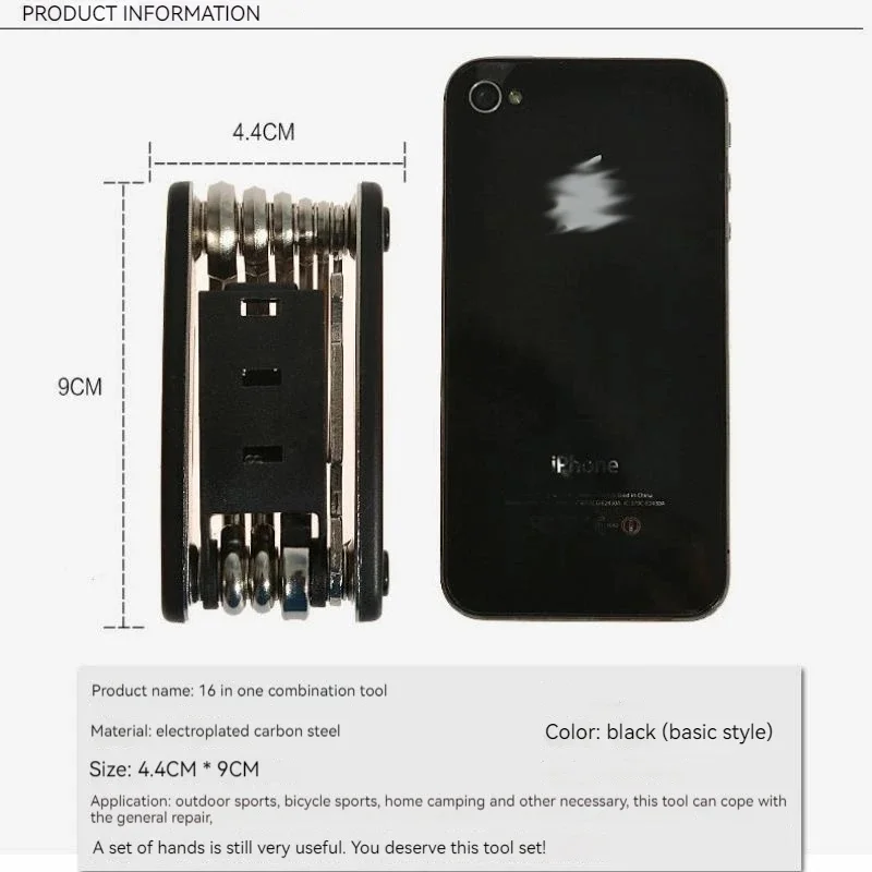 • 16 in 1 Tool :This toolbox contains 16 different tools, making it a versatile and practical choice for any cyclist or mechanic.