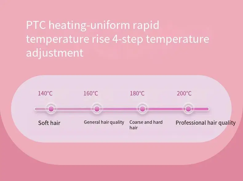 4. Four gears, approximately 220 ℃, suitable for extremely hard hair types, based on hair quality.