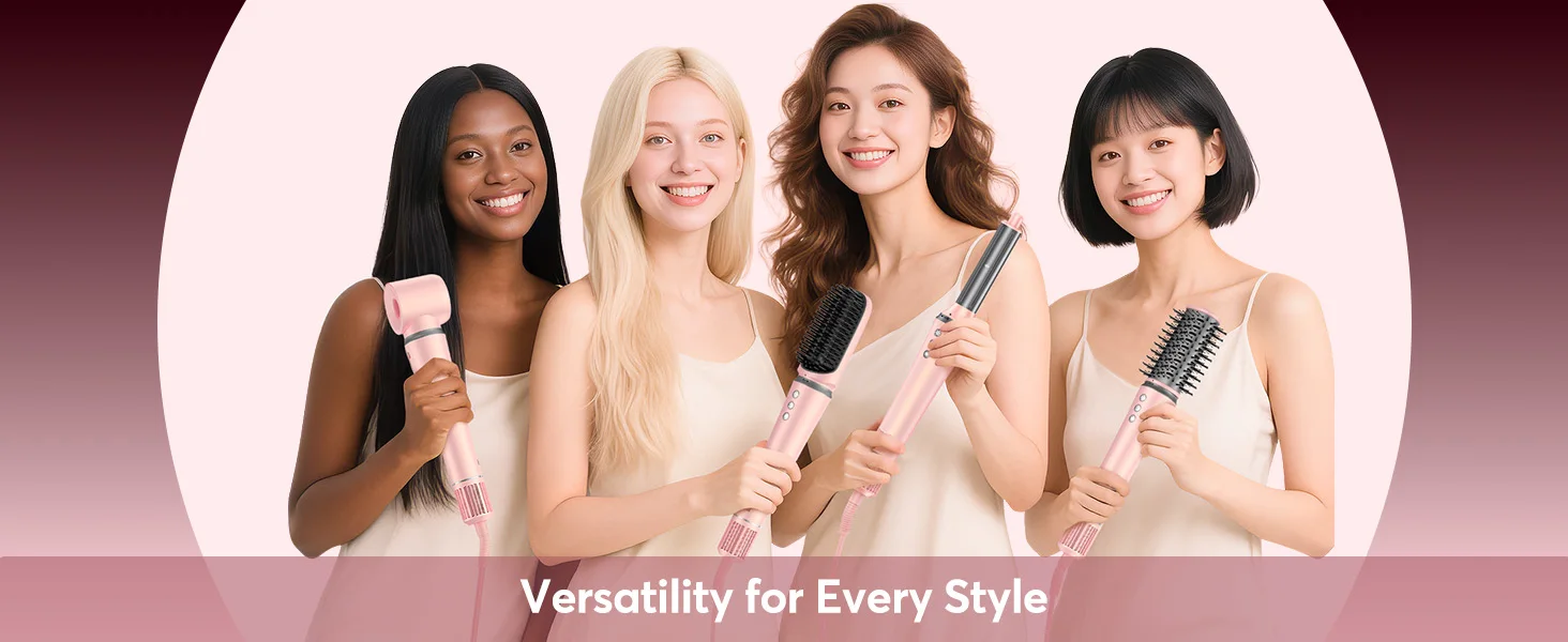 High Speed 5 in 1 Hair Dryer Hot Air Comb Set,Hair Brush Curling Iron Hair Straightener Styling Tool For Blow Dryer Gift Box