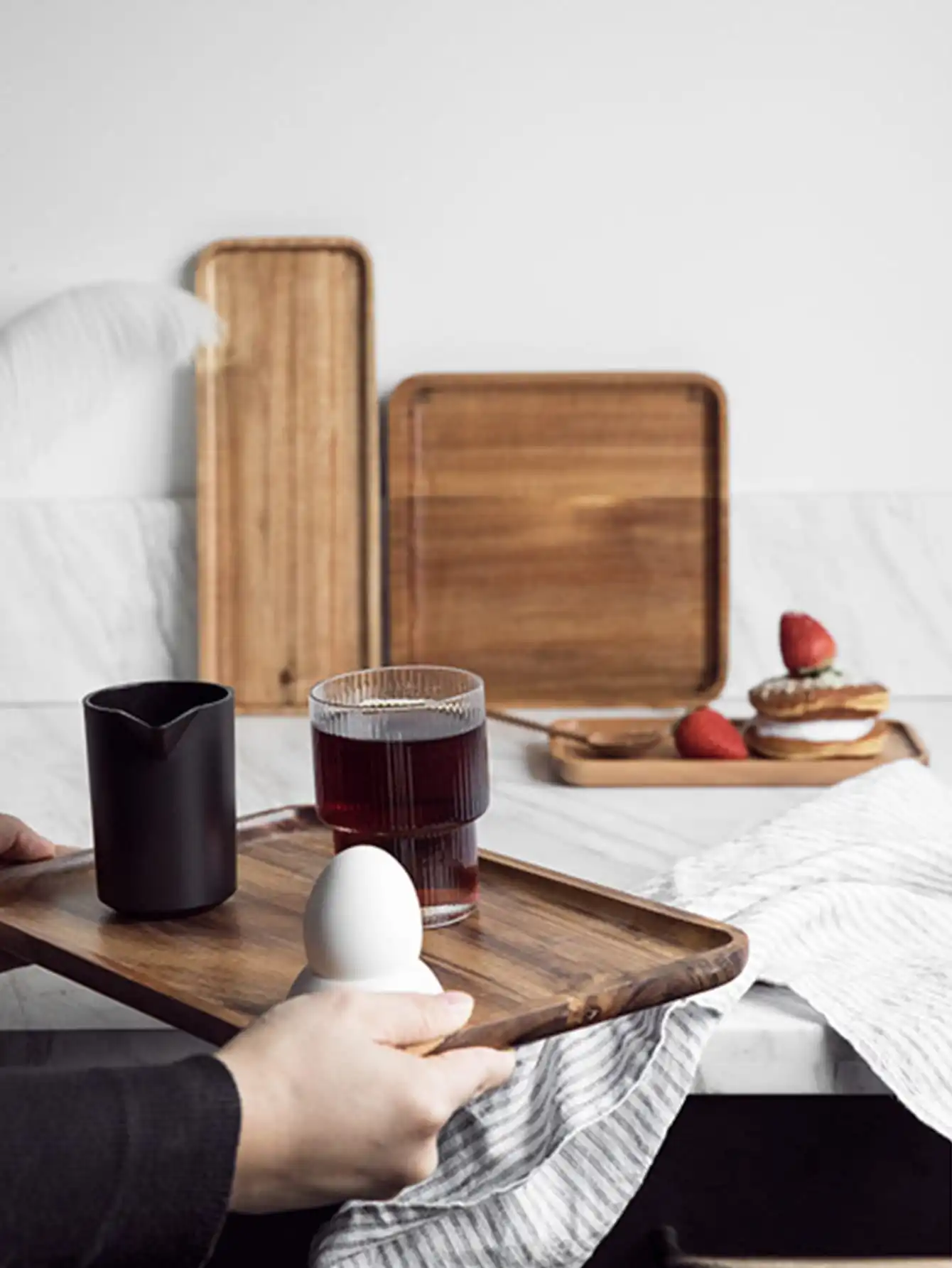 Beautiful Intricacies – The beautiful intricacies comes with natural wood grain. Being a natural material, they have some biophilic appeal. When it comes to the look of them, wooden trays can sit as nicely on coffee tables and mantlepieces as they do on your lap as TV dinner trays.
