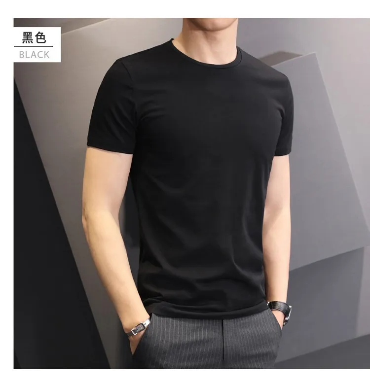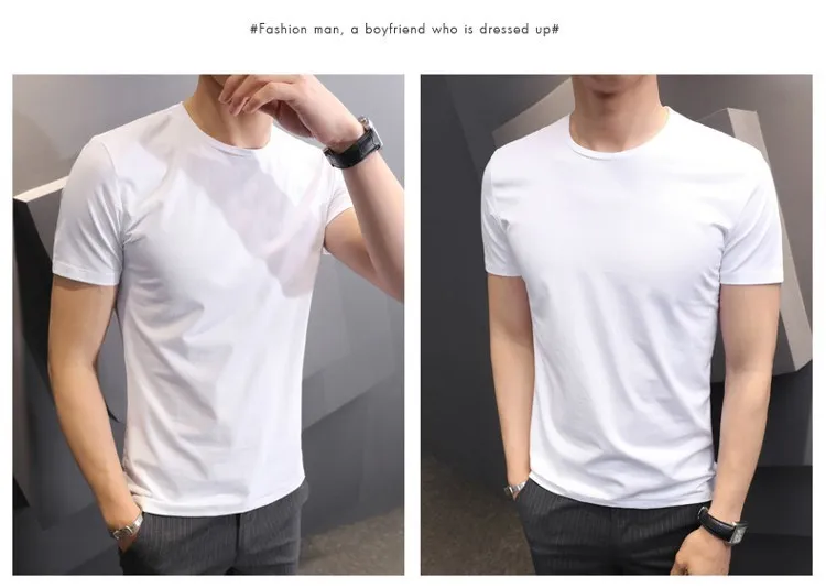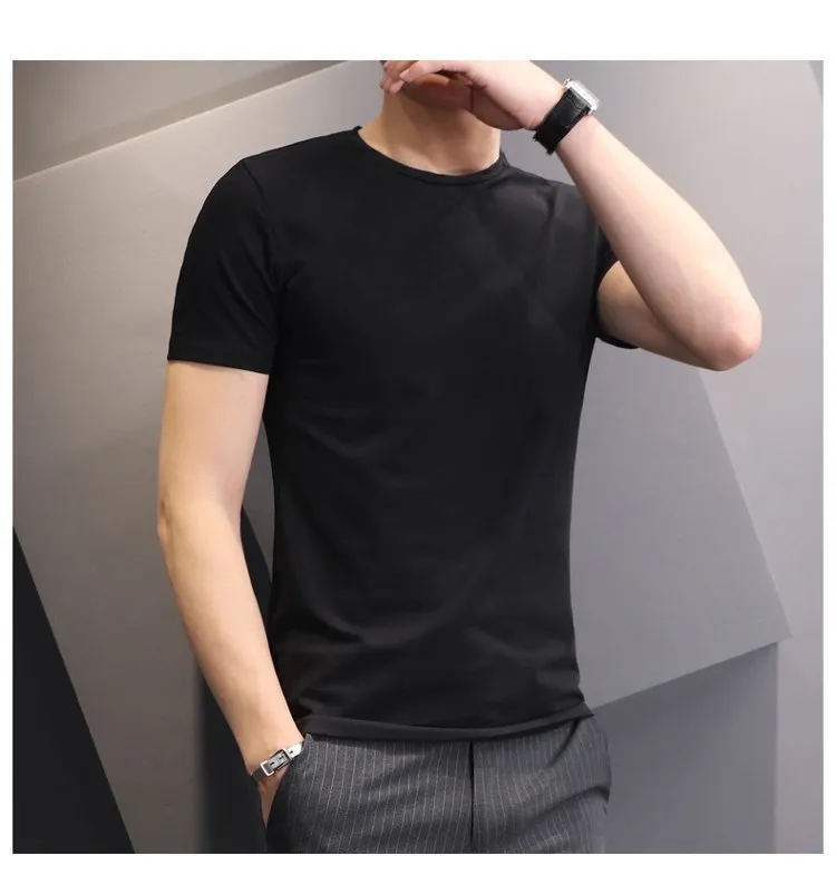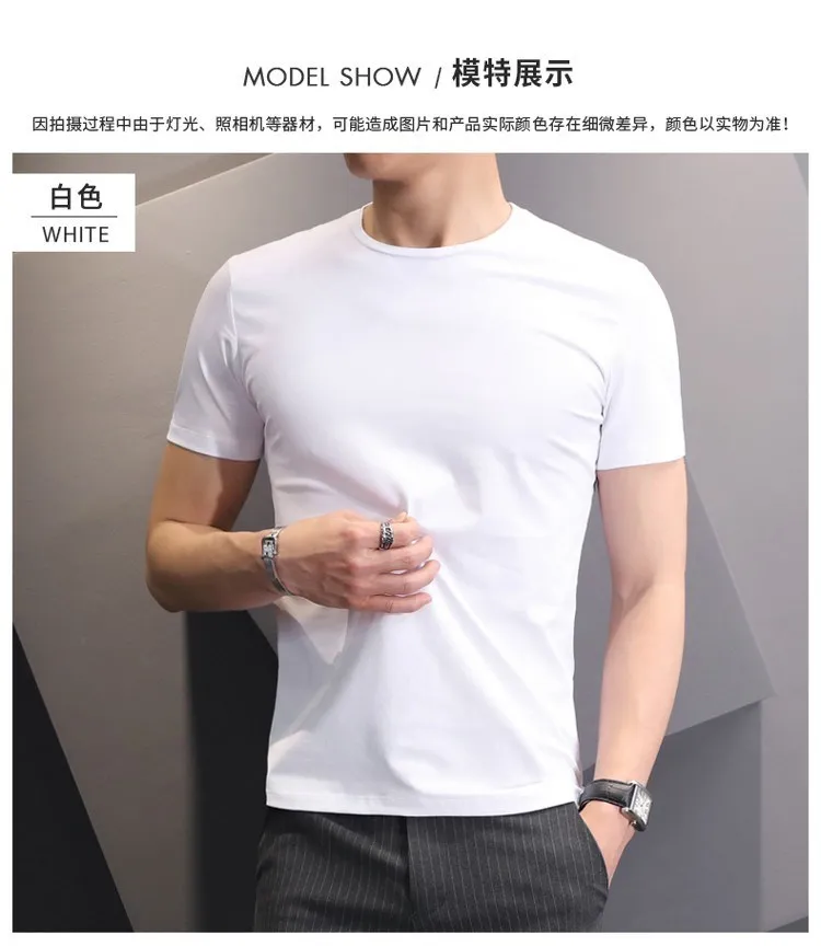 T-shirt White Black Short-sleeved Men’s Clothing Slim Round Neck Bottoming T Shirt Trendy Casual Solid Color