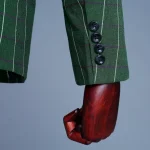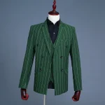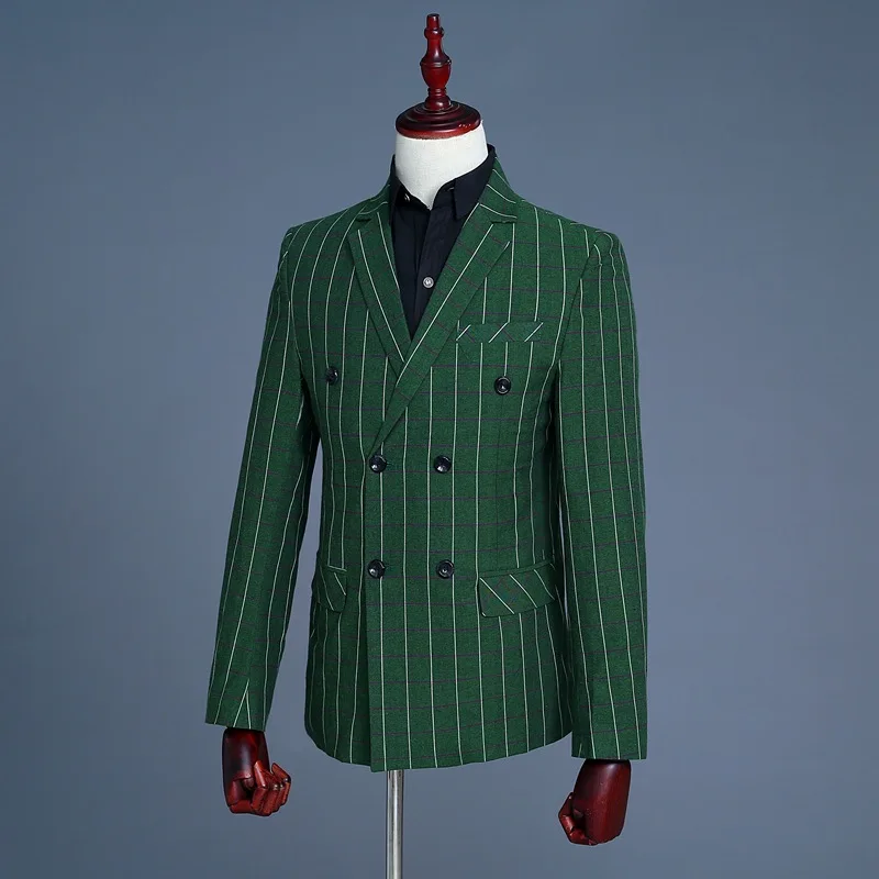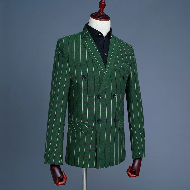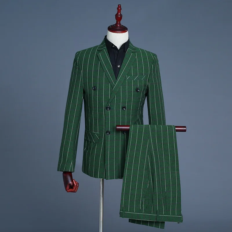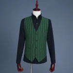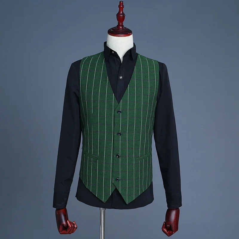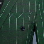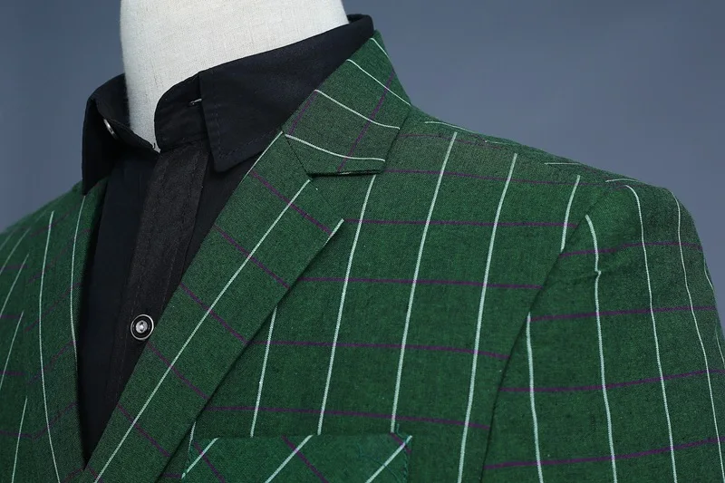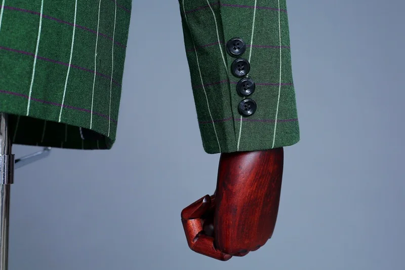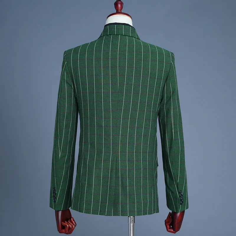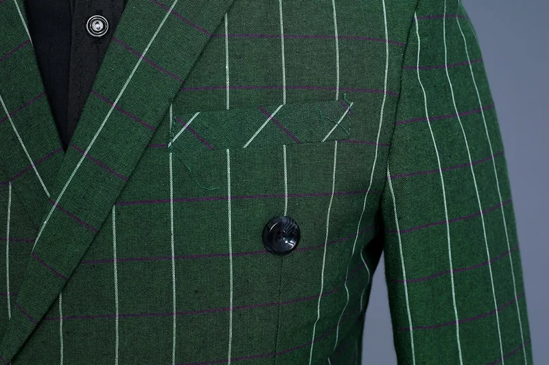 Men’s Green Checks Suits Double Breasted Three Piece Set (Blazer +Vest +Pants) Fashion Vintage Bridegroom Tuxedos Slim Suit Men
