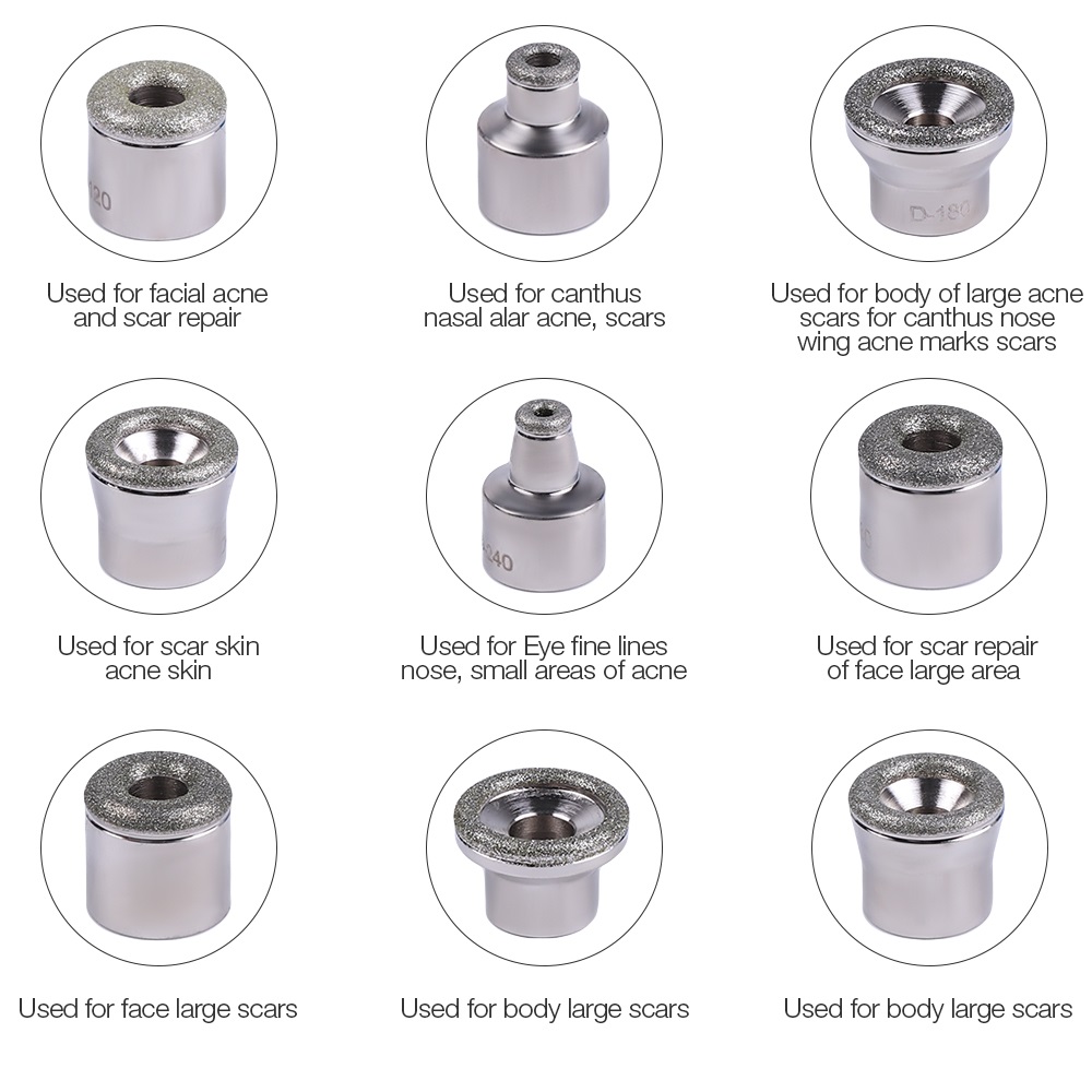 2. According to different skin, there are three kinds of grinding heads: small, medium and large. The matching micro-carving head is made of stainless steel instead of aluminum.