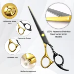 Professional Hair Cutting Kit, 9Pcs Professional Black Gold Hair Cutting, Stainless Steel Barber Supplies, Thinning Shears, Mult