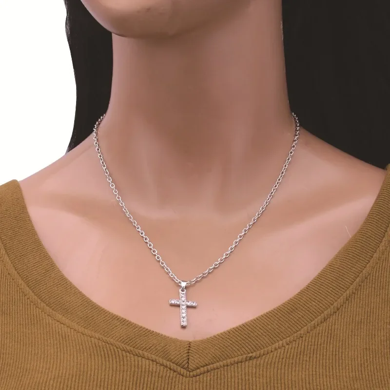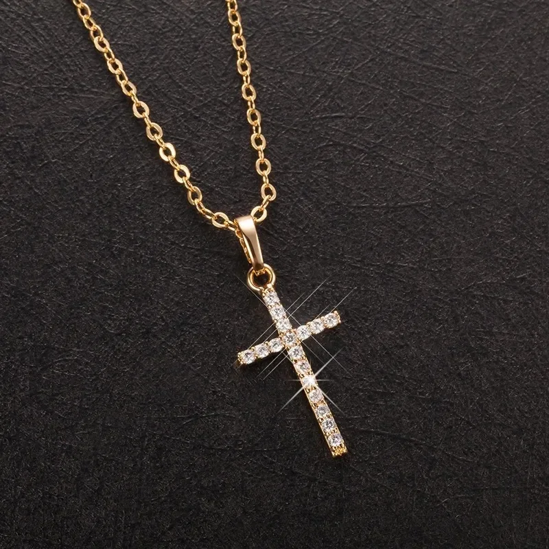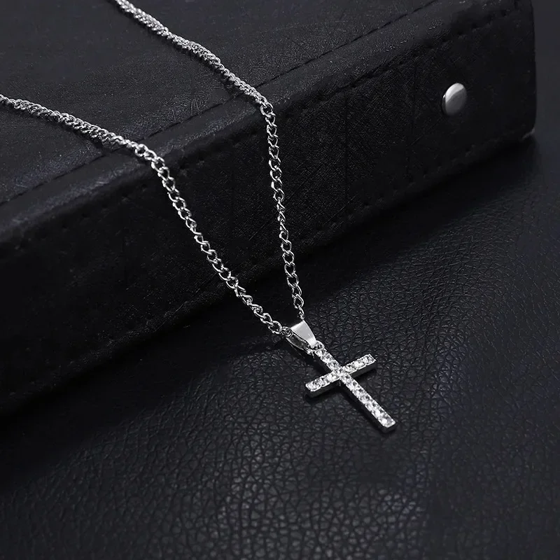 Stainless Steel Cross Pendant Zircon Necklace for Women Men Personalized Design Popular Hip Hop Choker Chain Party Jewelry Gifts