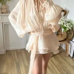 XL:Shoulder:51cm,Bust:134cm,Waist:96cm,Sleeve length:80cm,Length:85cm