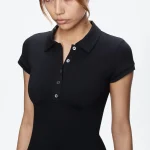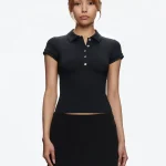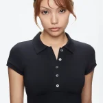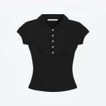 Women’s Black Slim Fit Polo Collar Short Sleeve Crop Tank Top Sexy Summer T-Shirt Fashion Casual Streetwear Clothing Apparel