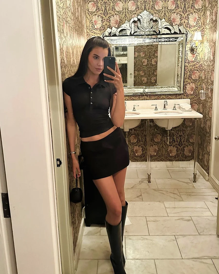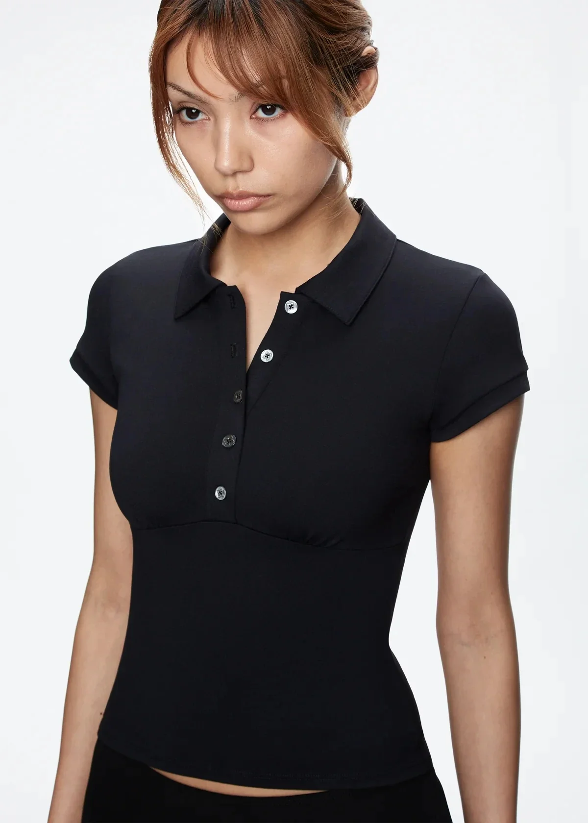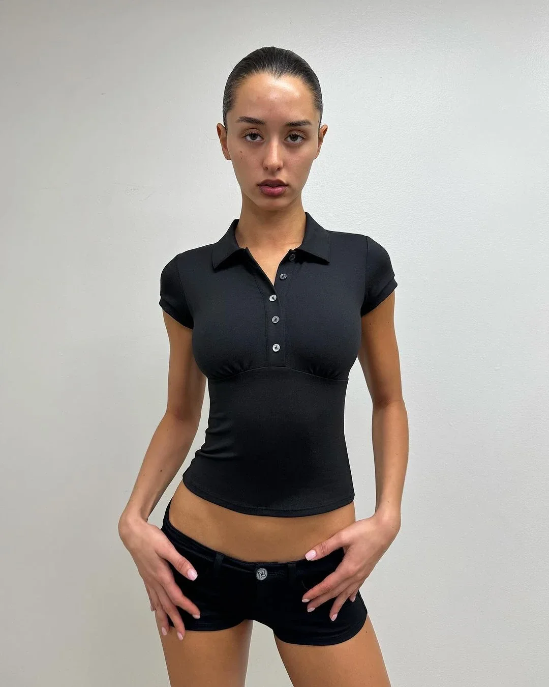 Women's Black Slim Fit Polo Collar Short Sleeve Crop Tank Top Sexy Summer T-Shirt Fashion Casual Streetwear Clothing Apparel