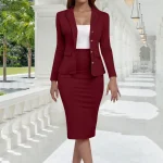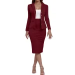 Women's Business Skirt Suit Set Long Sleeve Blazer Jacket And Pencil Skirt Set Casual Office Work 2 Piece Outfits