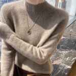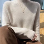 Women’s Cashmere Mock Neck Sweater Pullovers Thick Autumn Winter 100% Merino Wool Knitwear Raglan Sleeve Solid Basic Casual Tops