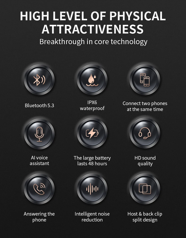 Features: Bluetooth 5.3, waterproof IPX6, clear and loud Bluetooth calls, large-capacity battery