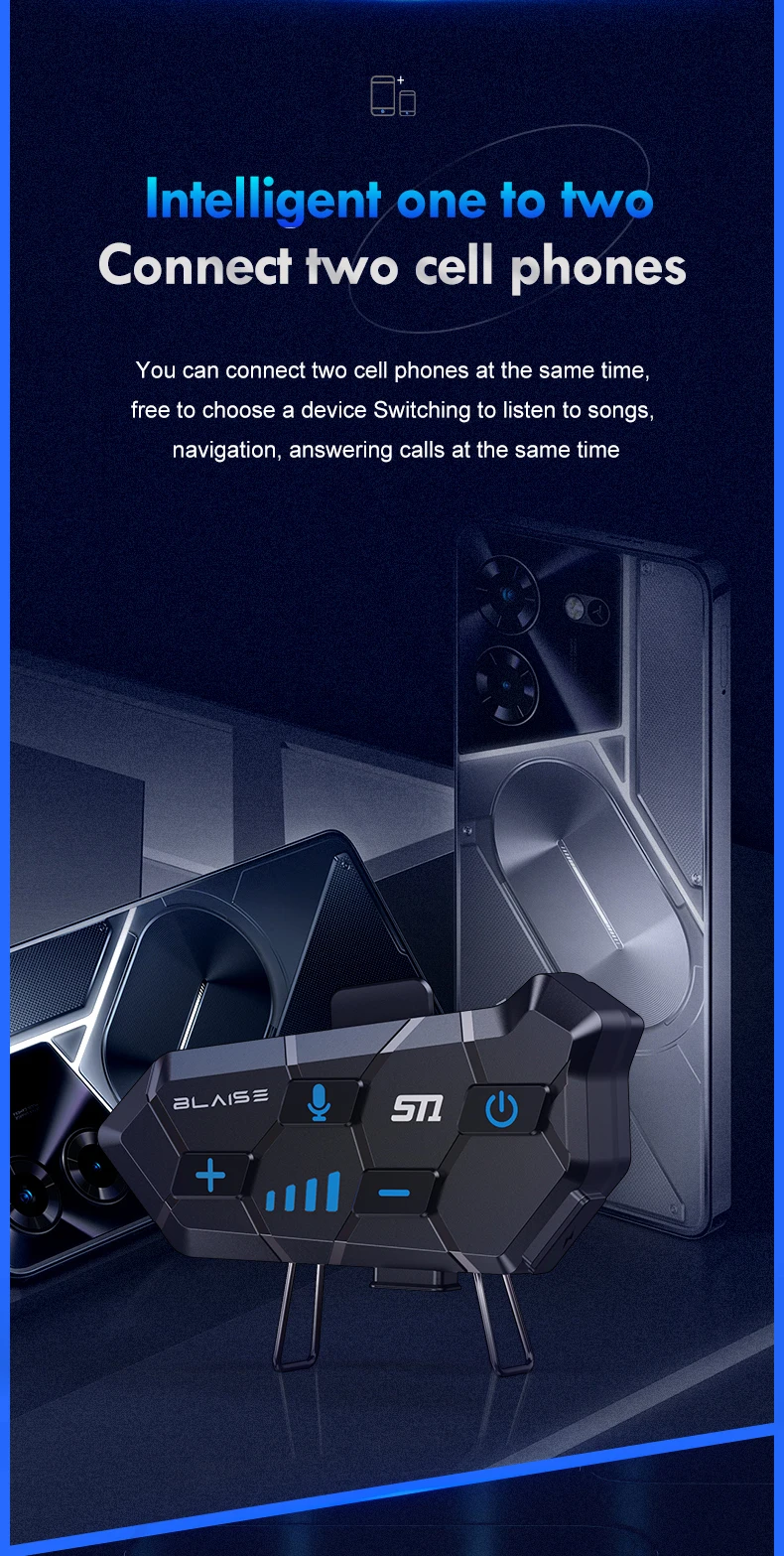 You can connect two mobile phones at the same time, choose freely, switch devices with one button to listen to songs, navigate, and answer calls